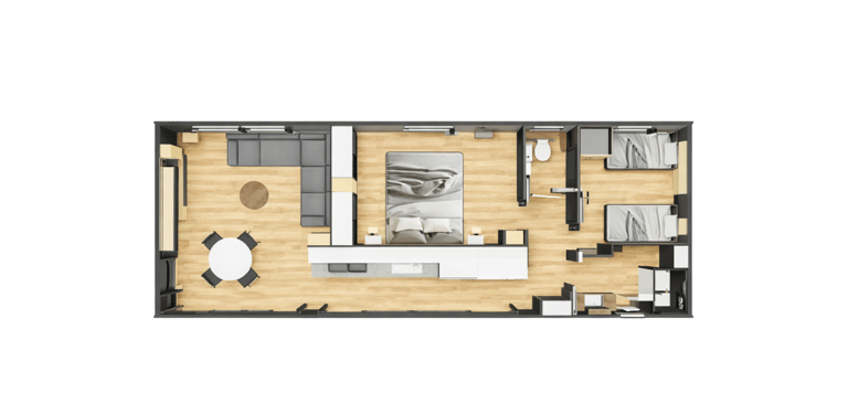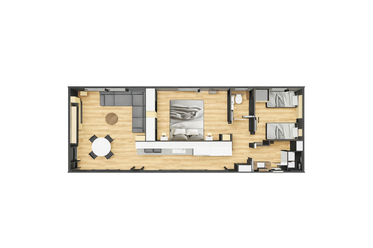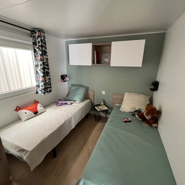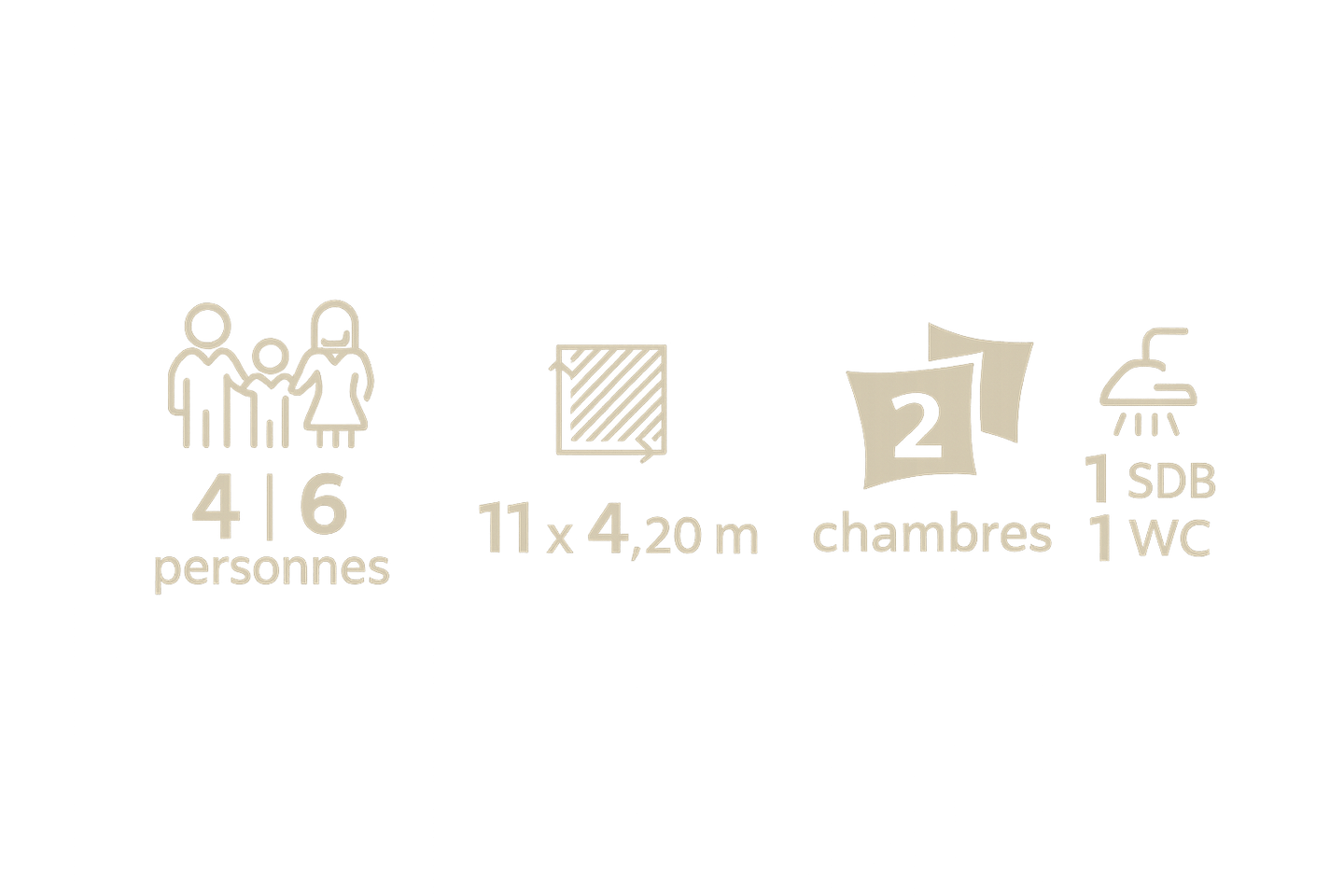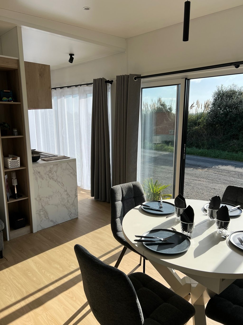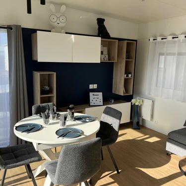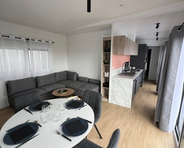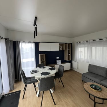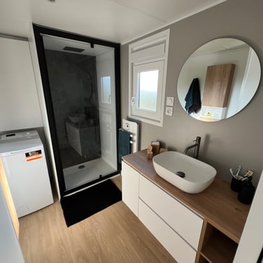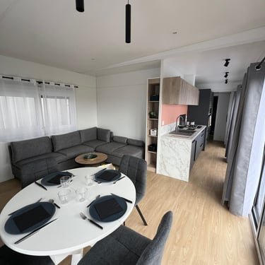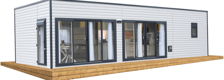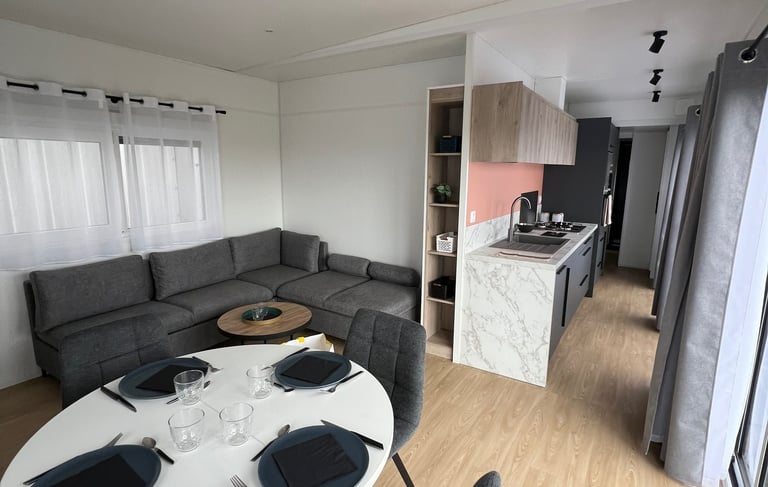 Le mobil‑home Nautilhome Glénan séduit par son design contemporain et son agencement optimisé. Son séjour lumineux, ouvert sur l’extérieur, crée un espace convivial idéal pour les moments en famille. La cuisine, moderne et fonctionnelle, offre de nombreux rangements et un confort d’utilisation quotidien. Les chambres, pensées pour le repos, bénéficient d’une ambiance douce et de rangements intégrés. La salle d’eau, élégante et pratique, complète l’ensemble. Grâce à sa construction haut de gamme et son isolation performante, le Glénan garantit un confort durable en toute saison