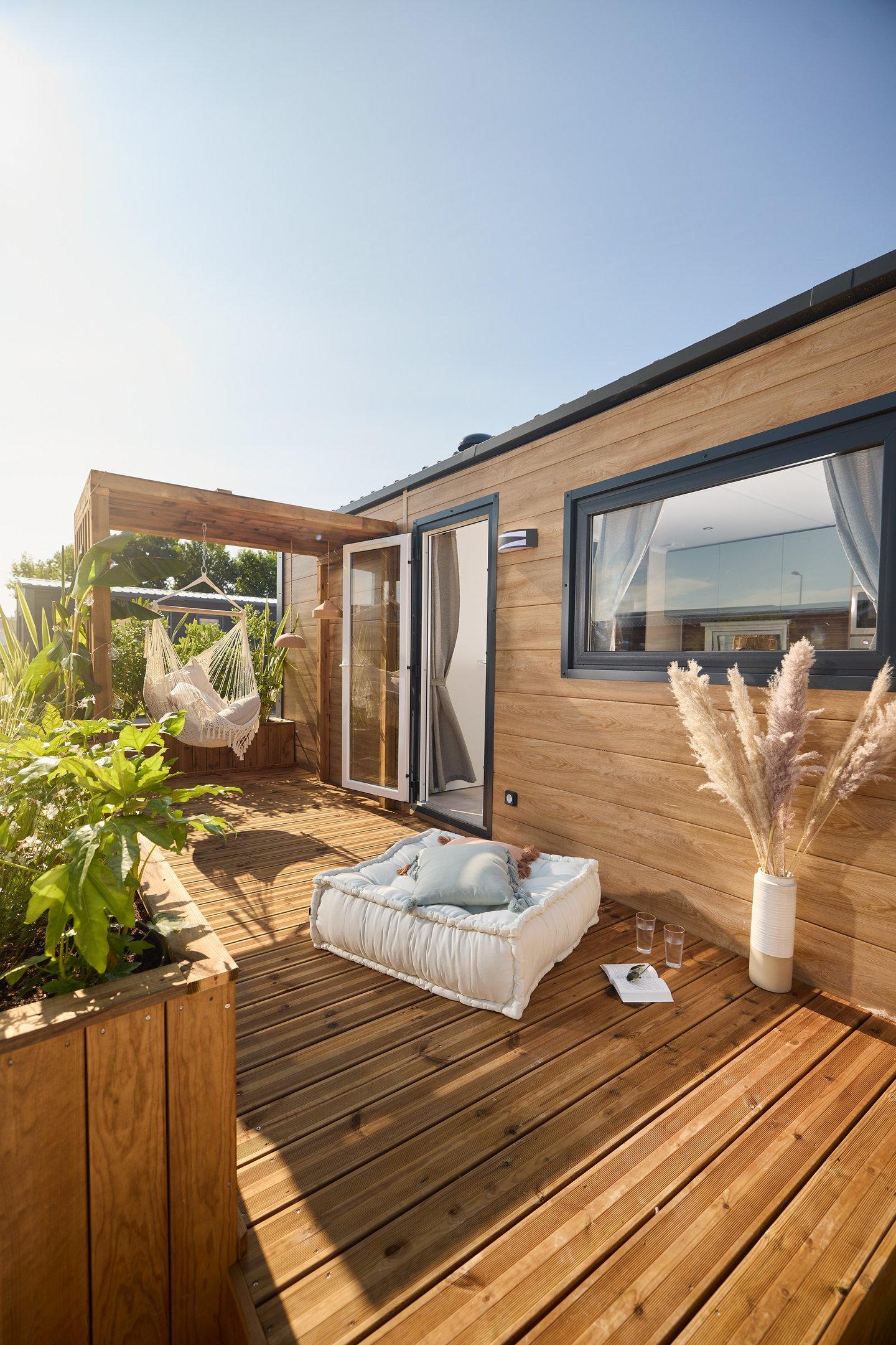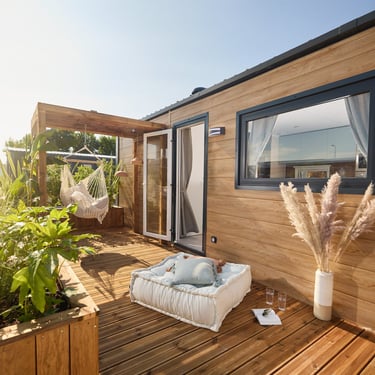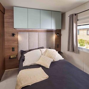 En exclusivité : ce mobil home bénéficie d'un local chauffe-eau en accès direct depuis l'extérieur pour des interventions techniques en toute discrétion ! En quelques mots : l'ELYA 35.2 est un mobil home bien agencé pour un confort toute l'année.