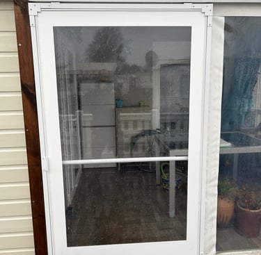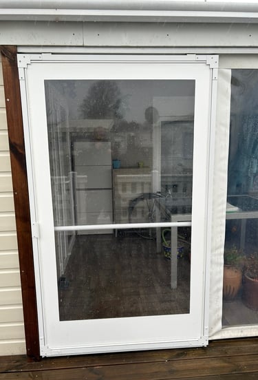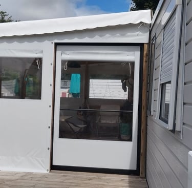 Une porte coulissante qui permet d'ouvrir et de fermer la porte en instant . Possibilité de personnalisé la couleur de la toile, et adaptable sur toutes terrasses